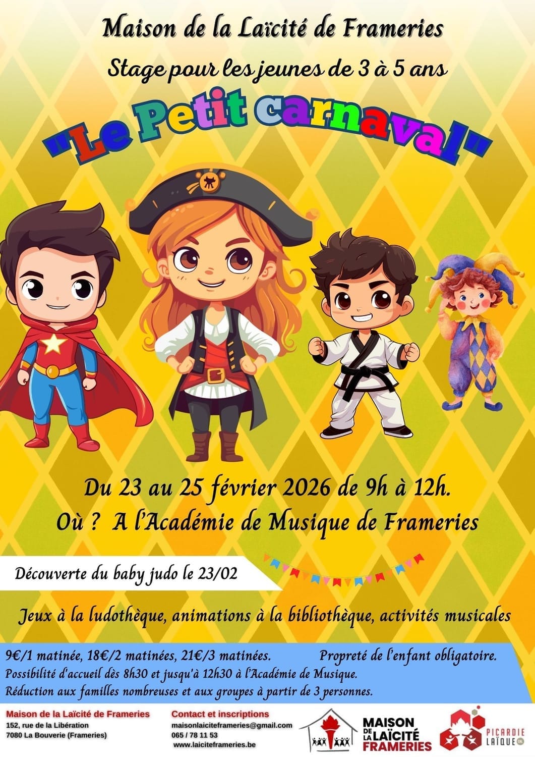 Lieu : Académie de Musique, rue du Curé Malengreau 10 à 7080 La Bouverie